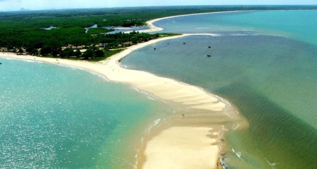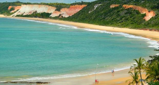 Em uma hora e meia, o trajeto pela costa revela um ponto de vista interessante do lugar. As falésias avermelhadas se agigantam. E é possível ver a mata preservada tomando o topo dos chapadões à beira-mar. O barco leva até as proximidades da praia do Amor, passa pela badalada praia do Madeiro e segue até a baía dos golfinhos, onde é feita uma parada para banho. O local é santuário desses animais marinhos, que fazem festa e saltam quando os barcos passam.
